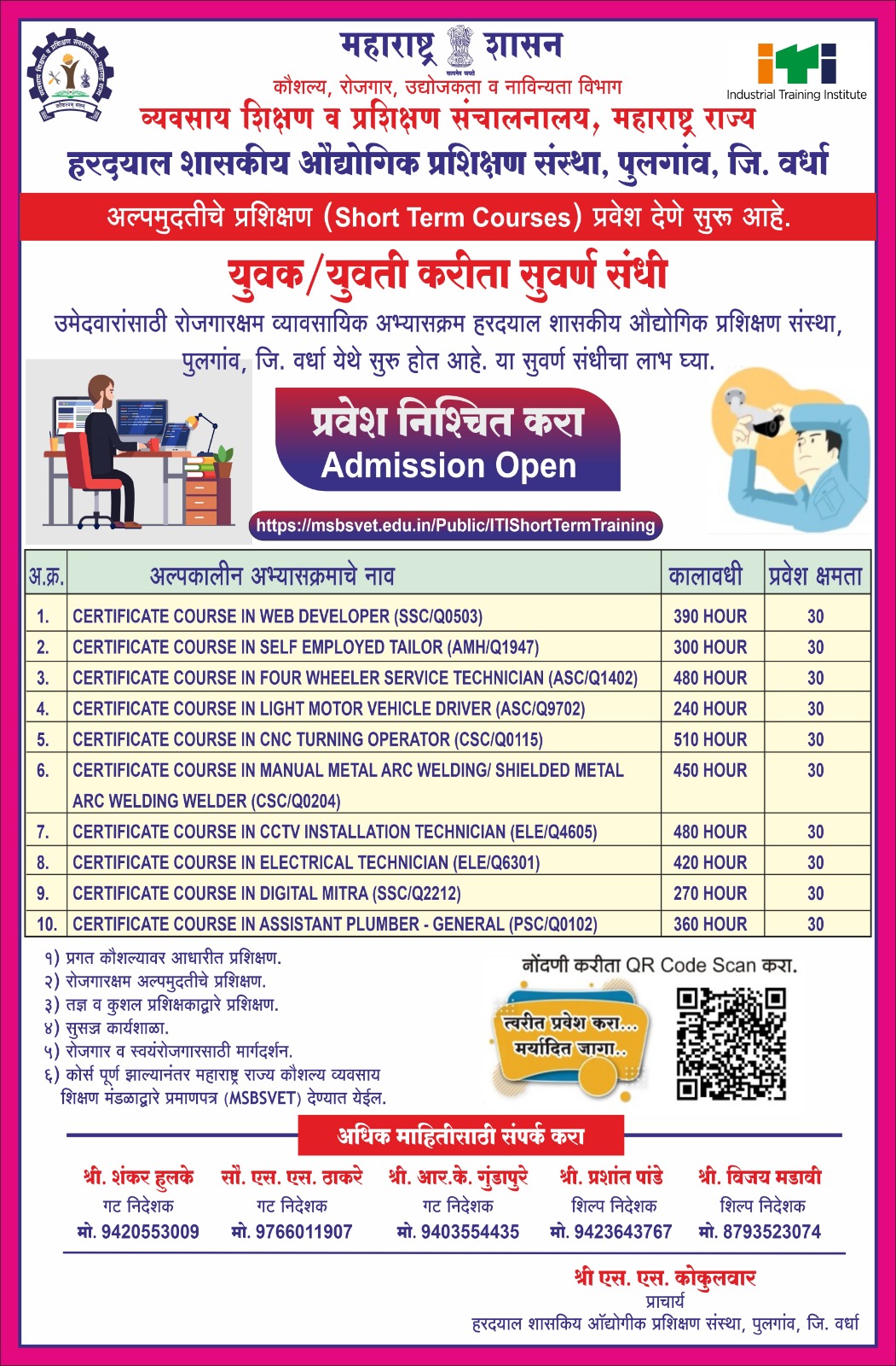 Email ID :- | iti.pulgaon@dvet.gov.in |